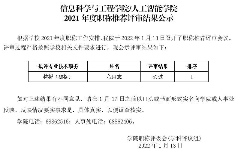 信息學(xué)院2021年度職稱推薦評(píng)審結(jié)果公示