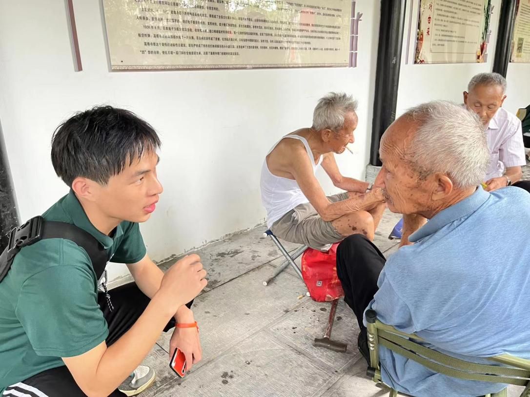 圖 實(shí)踐團(tuán)成員與老人在聊天