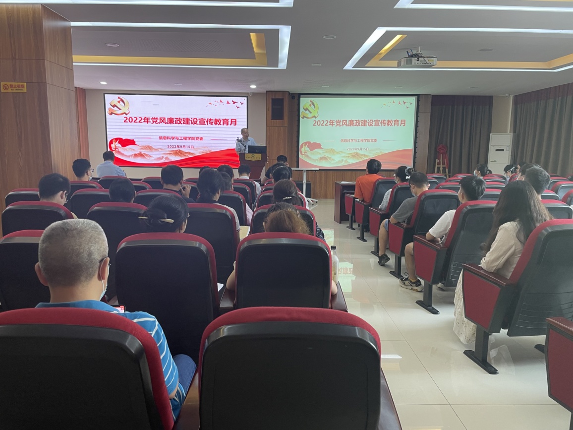 為扎實開展黨風廉政建設宣教月活動,深入推進清廉學院建設,9月15日下午,信息學院黨委在學院401學術報告廳召開黨風廉政建設宣傳教育月警示教育大會,學院領導班子成員、各系部主任、支部書記以及部分黨員代表參加會議,會議由學院黨委書記劉運顯主持。