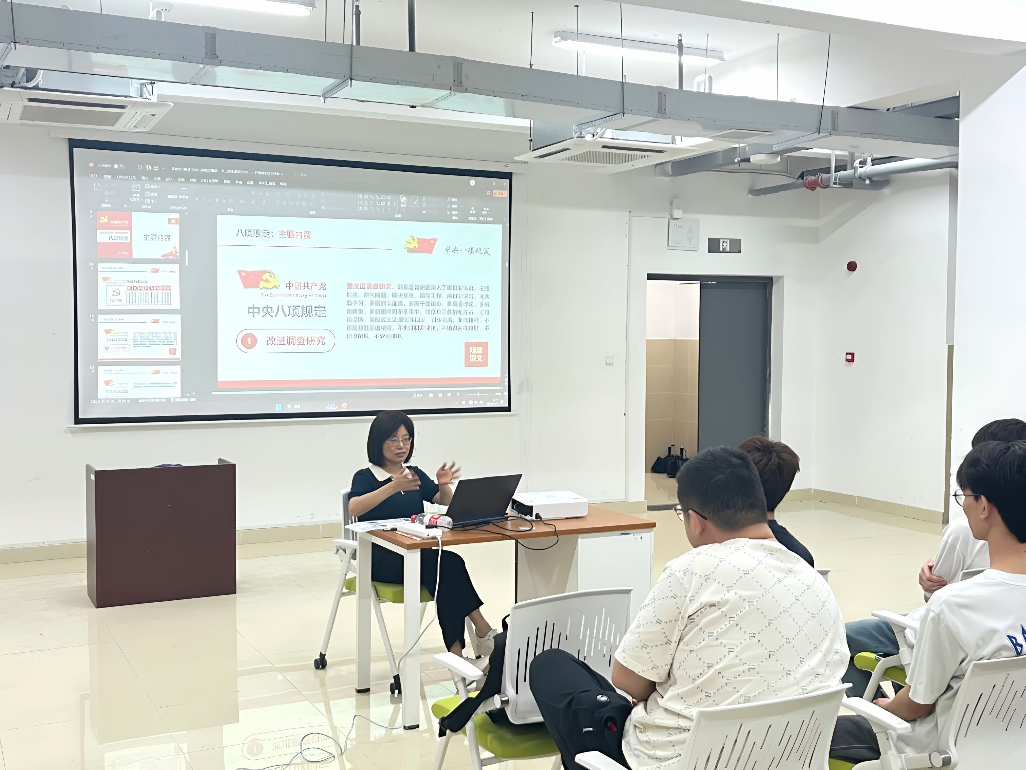 為推動中央八項規(guī)定精神在高等教育領(lǐng)域落地生根,培養(yǎng)政治堅定、專業(yè)過硬、作風(fēng)優(yōu)良的新時代復(fù)合型人才,5月15日下午,我院黨委書記冒穎以“深度學(xué)習(xí)中央八項規(guī)定精神”為主題,在青山一站式學(xué)生社區(qū)面向?qū)W生黨員講授專題黨課。集團黨委副書記何明、學(xué)辦主任楊恕、輔導(dǎo)員辛宇馳參加學(xué)習(xí)。