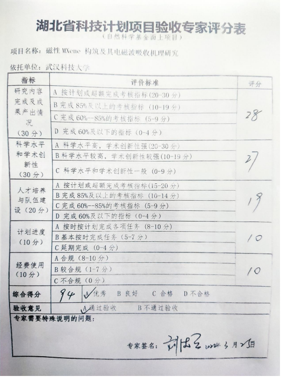 湖北省科技計(jì)劃結(jié)題項(xiàng)目驗(yàn)收工作結(jié)果公示