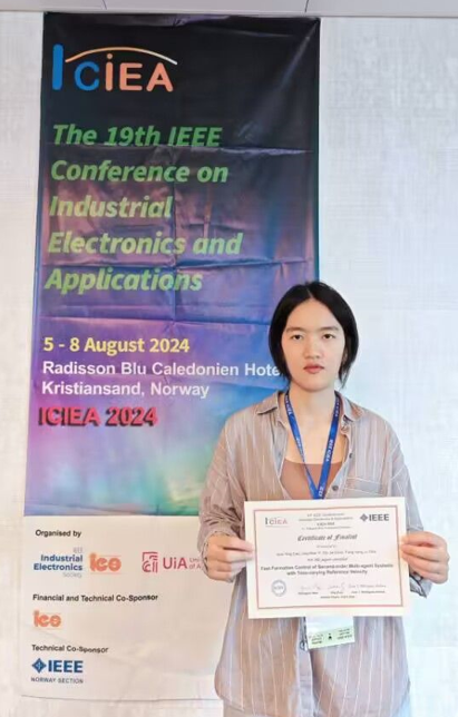 8月5日至8日,第19屆IEEE工業(yè)電子與應(yīng)用國際會議(19th IEEE Conference on Industrial Electronics and Applications, ICIEA 2024)在挪威克里斯蒂安桑召開。集團(tuán)人工智能與信息融合研究院易靜文副教授課題組碩士研究生曹曉穎的論文“Fast Formation Control of Second-order Multi-agent Systems with Time-varying Reference Velocity”榮獲ICIEA 2024最佳論文入圍獎。
