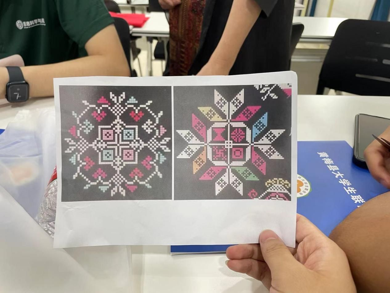 之后,學(xué)子們親手參與了挑花的創(chuàng)作過程,體驗(yàn)著挑花的藝術(shù)美感與制作技巧。在挑花大師的精心指導(dǎo)下,他們學(xué)習(xí)了如何選擇和配置線條與圖案,如何運(yùn)用針線進(jìn)行精準(zhǔn)刺繡,并且如何巧妙地搭配顏色和形態(tài),以此讓挑花作品更加鮮活和美麗。