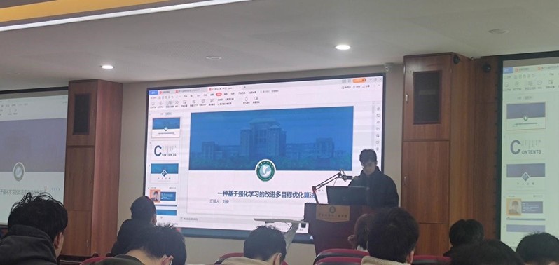 圖3.劉俊做題為“一種基于強(qiáng)化學(xué)習(xí)的自適應(yīng)多目標(biāo)優(yōu)化算法的路徑規(guī)劃方法”的報(bào)告