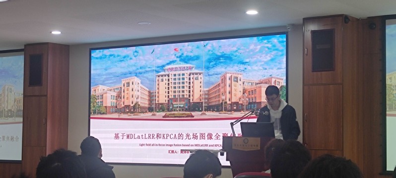 圖2.黃澤豐做“基于MDLatLRR和KPCA的光場(chǎng)圖像全聚焦融合”的報(bào)告