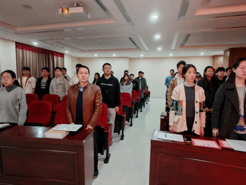 大會第一項,全體成員奏唱國歌,全體參會人員莊嚴(yán)肅立,高唱國歌。