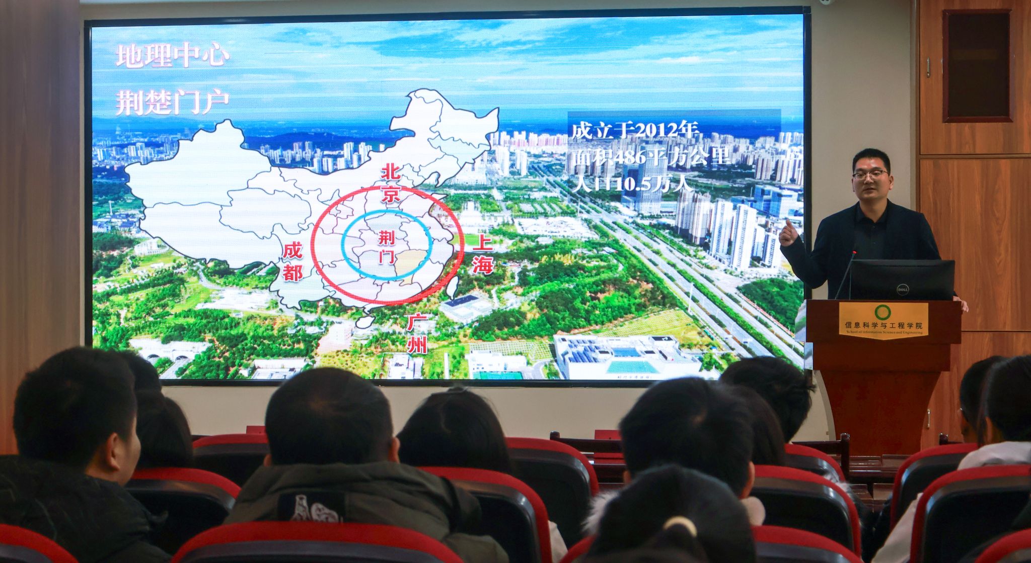 我校青山校區(qū)教十樓401報(bào)告廳里,李鄒洋在宣講中表示,新區(qū)正打造涵蓋研發(fā)、制造、測(cè)試的全產(chǎn)業(yè)鏈條,與我校人工智能學(xué)院的機(jī)器人、工業(yè)互聯(lián)網(wǎng)等研究方向深度契合。交通優(yōu)勢(shì)則為新區(qū)發(fā)展按下“快進(jìn)鍵”。隨著沿江高鐵(滬渝蓉高鐵)與呼南高鐵十字交匯,荊門至武漢通勤時(shí)間縮短至42分鐘,至宜昌僅需20分鐘?!拔磥韽母哞F站到辦公區(qū)僅需10分鐘,新老城區(qū)通過一條主干道無縫銜接?!崩钹u洋說。