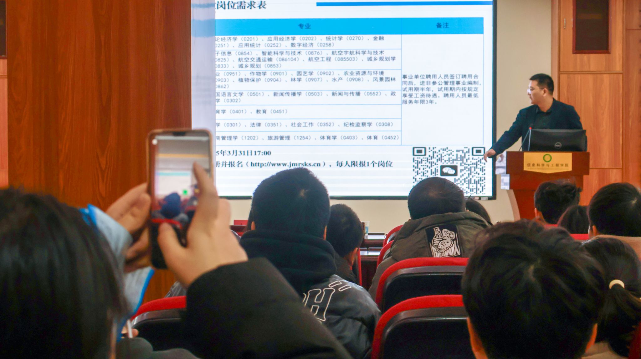 此外,宣講會(huì)上師生認(rèn)真觀看了荊門市漳河新區(qū)宣傳片、人才政策匯編手冊(cè),時(shí)不時(shí)拿起手機(jī)記錄。宣講結(jié)束后,師生紛紛與李鄒洋熱情交流。該學(xué)院博士生王同學(xué)表示:“政策誠意遠(yuǎn)超預(yù)期,尤其是科研與產(chǎn)業(yè)的無縫對(duì)接,對(duì)工科生極具吸引力?!?/span>